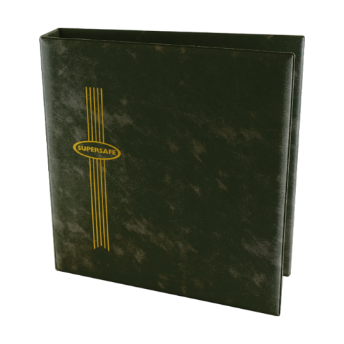 This King Size Supersafe Binder is made with a blue vinyl cover. This 3 ring binder will accommodate any of the King Size Supersafe pages.