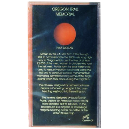 Oregon Trail Memorial Comm. Half $ (The history of the coin is imprinted on the holder)