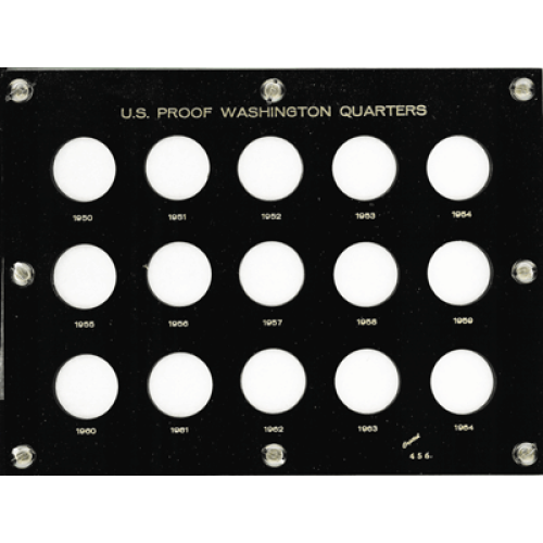 This Capital Plastic Holder has 15 ports to hold your US Proof Washington Quarter Collection or also known as The Silver Coins. At the top of this holder, the printing in gold reads "US Proof Washington Quarters" and is dated from 1950-1964. The background of this holder is