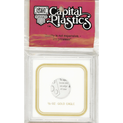 Capital Plastics 3.3x3.3 1/2 oz. Eagle (VPX) 3.3x3.3 vest pocket size with clear molded plastic snap together surrounded by double gold border. 1 slot(s).
