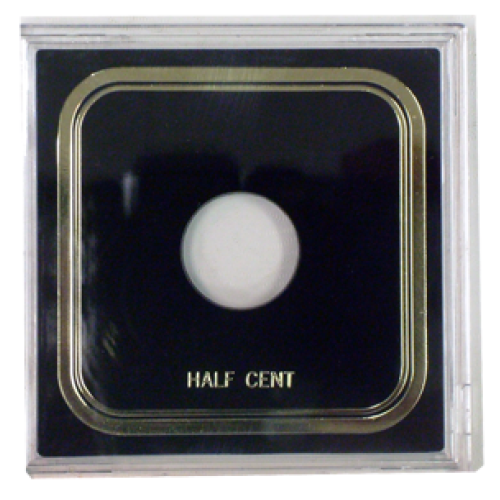 Capital Plastics 3.3x3.3 Half Cent Odd Type (VPX) 3.3x3.3 vest pocket size with clear molded plastic snap together surrounded by double gold border.