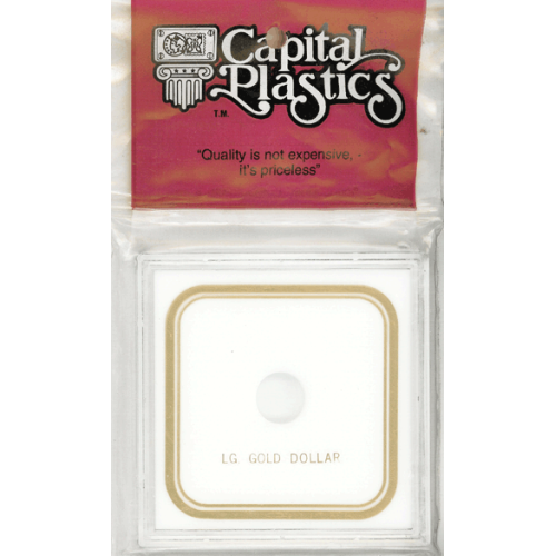 Capital Plastics 3.3x3.3 Large gold Dollar (type 2&3) (VPX) 3.3x3.3 vest pocket size with clear molded plastic snap together surrounded by double gold border. 1 slot(s).