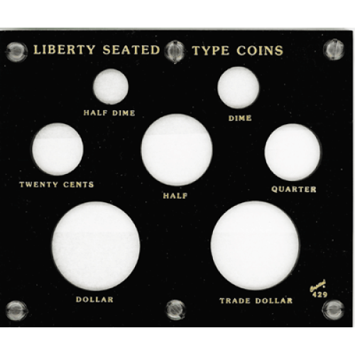 This Capital Plastics holder is for US Liberty Seated Type Coins. There is a port for one of each of the dollars listed below.