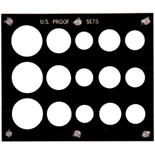 This 5x6in Capital Plastic Holder is for a 3 sets of 5 Coin Proof Set which has a place for the Half Dollar, Quarter, Dime, Nickel and Cent (from left to right). The top of the holder says U.S. Proof Sets and has a total of 15 slots for your coins. The background color of this large capital holder is black. We have had a lot of customer use these holders to house their 1950, 1951 and 1952 Proof Sets all in 1 single holder.