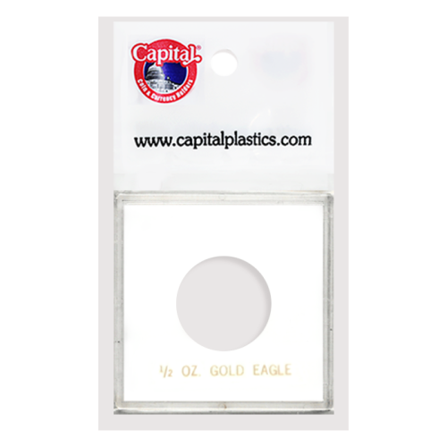 Capital Plastics 2.5x2.5 1/2 oz. Eagle (Krown) 2.5x2.5 clear molded plastic snap together with denomination print. 1 slot(s).
