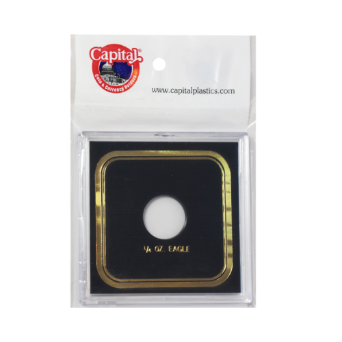 Capital Plastics 3.3x3.3 1/4 oz. Eagle (VPX) 3.3x3.3 vest pocket size with clear molded plastic snap together surrounded by double gold border. 1 slot(s).