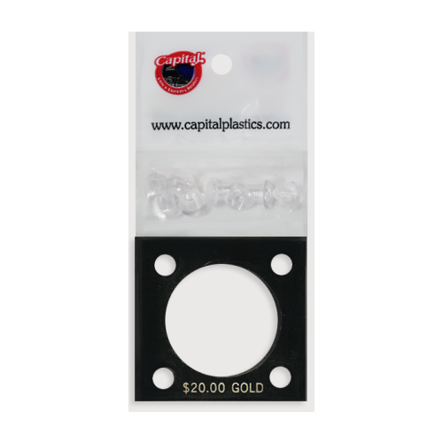 Capital Plastics 2x2 $20.00 Gold 144 Screw Type Holder with plastic layers. Color is Black. Text on the holder says "$20.00 GOLD".