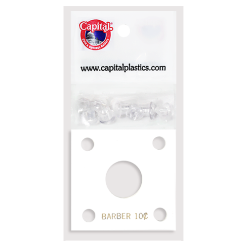 Capital Plastics 2x2 Barber Dime 144 Screw Type Holder with plastic layers. Color is White. Holder reads "BARBER 10c".