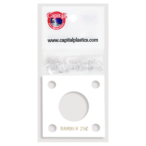 Capital Plastics 2x2 Barber Quarter 144 Screw Type Holder with plastic layers. Color is White. Holder text reads "BARBER 25c".