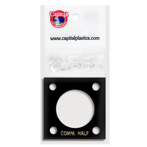 Capital Plastics 2x2 Commemorative Half 144 Screw Type Holder with plastic layers. Color is Black. The text on the holder reads "COMM. HALF".