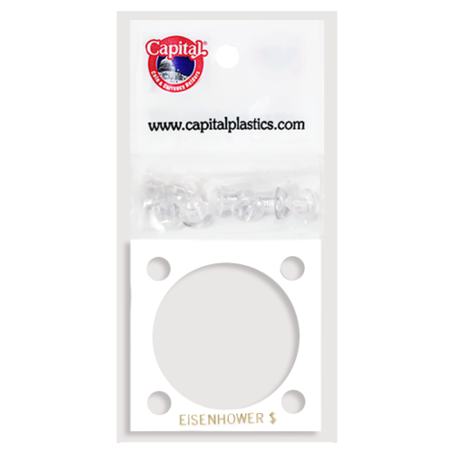 Capital Plastics 2x2 Eisenhower Dollar 144 Screw Type Holder with plastic layers. Color is White. The text on the holder reads "EISENHOWER $".