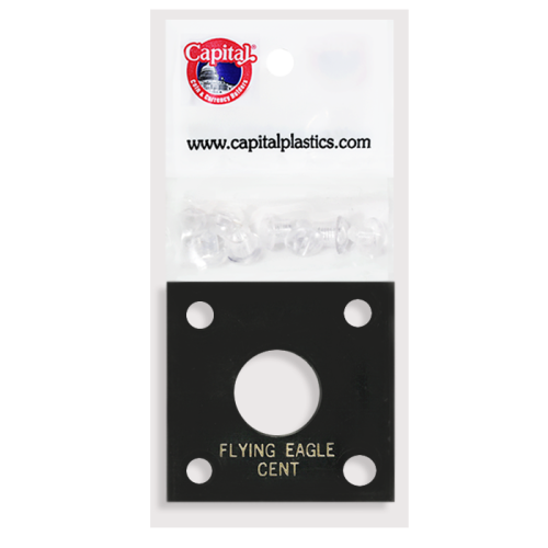 Capital Plastics 2x2 Flying Eagle Cent 144 Screw Type Holder with plastic layers. Color is Black. The text on the holder says "FLYING EAGLE CENT".