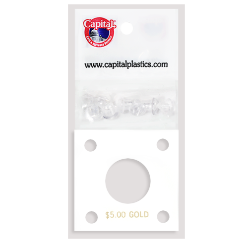 Capital Plastics 2x2 $5.00 Gold (22.5mm which is for the 1839-1940 series) 144 Screw Type Holder with plastic layers. Color is White. Text on the holder says "$5.00 GOLD".