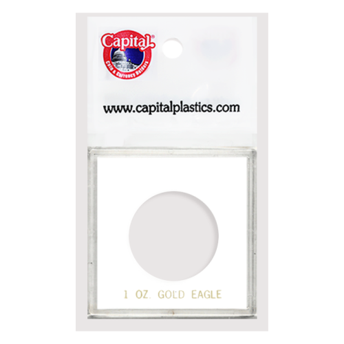 Capital Plastics 2.5x2.5 1 oz. Gold Eagle (Krown) 2.5x2.5 clear molded plastic snap together with denomination print. 1 slot(s).