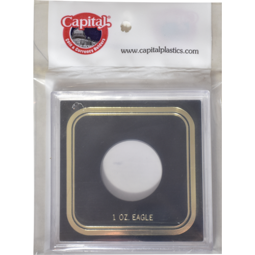 Capital Plastics 3.3x3.3 1 oz. Gold Eagle (VPX) 3.3x3.3 vest pocket size with clear molded plastic snap together surrounded by double gold border. 1 slot(s).