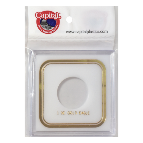 Capital Plastics 3.3x3.3 1 oz. Gold Eagle (VPX) 3.3x3.3 vest pocket size with clear molded plastic snap together surrounded by double gold border. 1 slot(s).