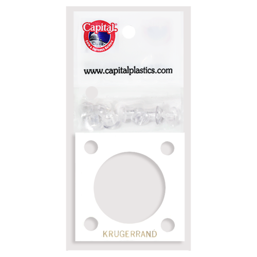 Capital Plastics 2x2 1 oz Gold Krugerrand 144 Screw Type Holder with plastic layers. Color is White. Text on the holder says "KRUGERRAND".