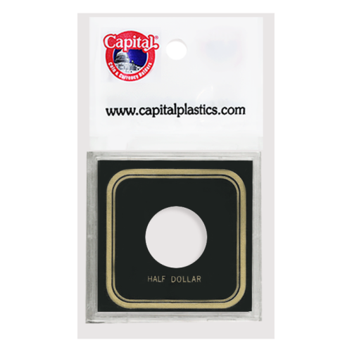 Capital Plastics 3.3x3.3 Half Dollar (VPX) 3.3x3.3 vest pocket size with clear molded plastic snap together surrounded by double gold border. 1 slot(s).