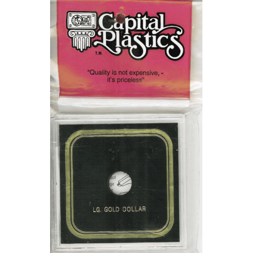Capital Plastics 3.3x3.3 Large gold Dollar (type 2&3) (VPX) 3.3x3.3 vest pocket size with clear molded plastic snap together surrounded by double gold border. 1 slot(s).