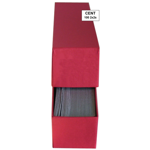 Great way to get your Penny / Cent sizes coins in order with this Guardhouse Red color coded box and 100 paper staple style 2x2s. The red box measures 8.5x2x2 inches.