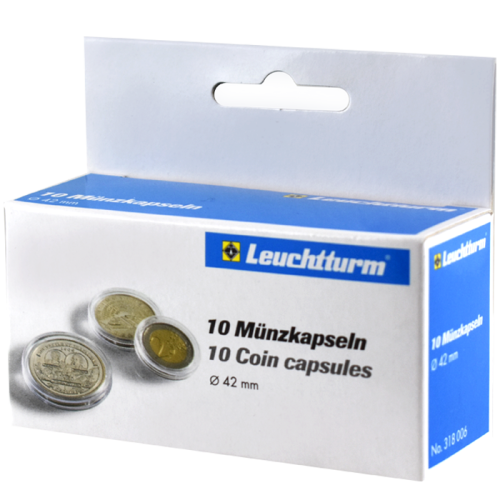These round Lighthouse Brand 42mm Coin Capsules come in a package of 10 and are crystal clear for U.S. and foreign coins.
