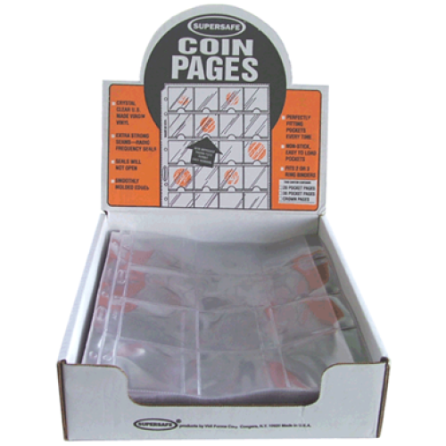 2.5 x 2.5 pocket pages. Packed in an attractive display with 100 per box, Supersafe standard vinyl coin and currency notebook pages offer name brand, quality storage for currency holder and flips.