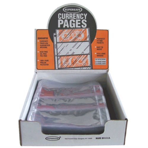 These Supersafe 4 Pocket Pages are made to fit in any standard size 3 ring binder and hold your Modern Currency pages. All 100, 4 Pocket Pages are packed in an attractive display box. Supersafe standard vinyl coin and currency notebook pages offer name brand, quality storage for currency holder and flips.