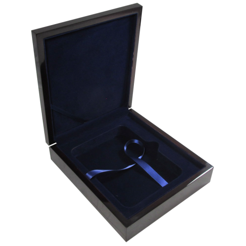 This wood presentation box holds one NGC Oversize Holder slab. It has a beautiful wood grain texture peaking through the mahogany color piano
