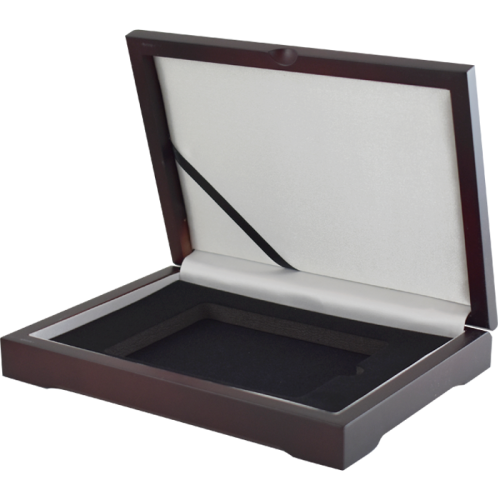Two coins in one PCGS slab - this is the box! This unique wood display box is designed to hold one of the PCGS two coin holders. This sturdy, hand-crafted mahogany color Guardhouse box has a black foam interior around the coin slab, a white cushion pad and a black ribbon on the lid's interior, to give the certified coins a neat setting.