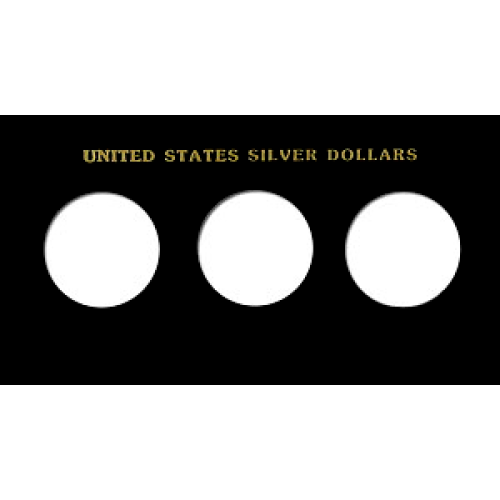 This Capital Plastic Holder has 3 Blank ports to hold your US Silver Dollars Collection. At the top of this holder, the gold printing reads, United States Silver Dollars. The back of this holder is Black.