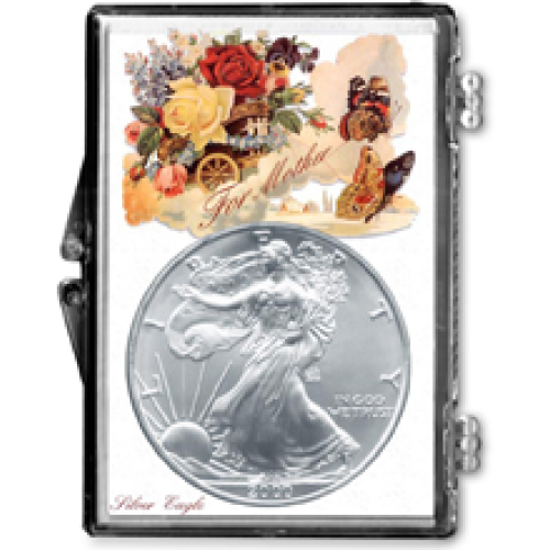 This Edgar Marcus snap lock is made to hold your American Silver Eagle ASE. This coin holder is titled For Mother and features beautiful flowers and butterflies.