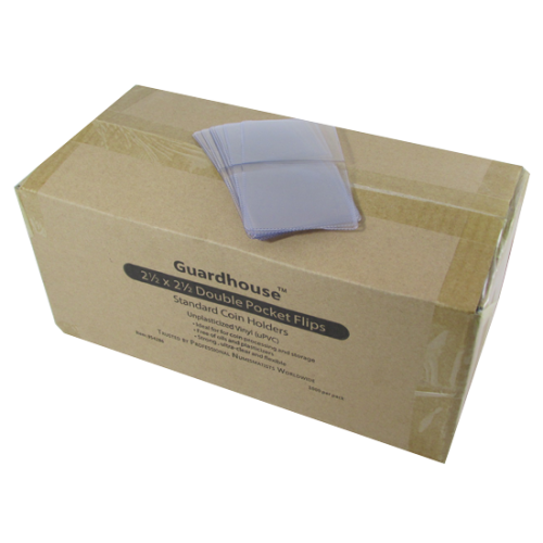 Pre-separated, 7mil, double polished unplasticized vinyl flips are a safe and reliable way to store and process coins. Guardhouse flips do not require tearing to separate and feature rounded corners that will not poke or cut your hands. These flips are about 20% thicker than other standard coin flips, and designed for medium to long term storage needs.