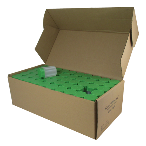 Guardhouse brand coin tubes feature a unique, proprietary design and are the perfect solution for storing American Silver Eagles. For quick identification, Guardhouse ASE tubes feature a green top. Sleek and ergonomic, the Guardhouse snap-tight lids and translucent tubes allow for easy identification of their contents, stack for tidy storage and also fit perfectly in the US Mint American Silver Eagle Monster Boxes. Convenient thumb slots allow for quick access when boxed. Bulk Guardhouse brand coin tube boxes are clearly labeled to identify contents and come in boxes of 100.