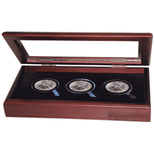 This Guardhouse display box is made to store 3 coins in (XL) capsules. It features a beautiful Mahogany finish and a Glass top. Guardhouse provides you with superior quality at a great price! Capsule sold separately.