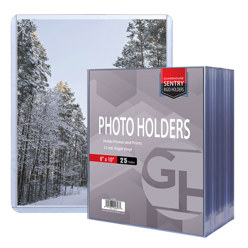 Protective sleeve toploaders are essential items when collecting and saving autographs or photos. Sold in packs of 25, these Guardhouse toploaders for autographs and photos are 12 mil thick and measure 8 1/8 x 10 1/16 inside, while the outside measures 8 5/16 x 10 3/16 inches. Guardhouse toploaders are made of non-plasticized rigid vinyl and are designed to keep autographs and photos unharmed during long-term storage, at the same time as offering the collector great visibility of their collectible items.