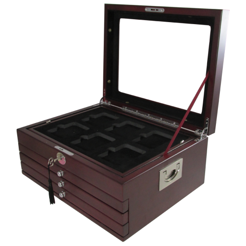 This Deluxe Guardhouse display box is made to store 24 certified coin slabs. This box will accommodate your certified coins from PCGS & NGC. It features wood trays that pull out with a key lock, a beautiful real Mahogany wood finish and a Glass Top. Guardhouse provides you with superior quality at a great price!
