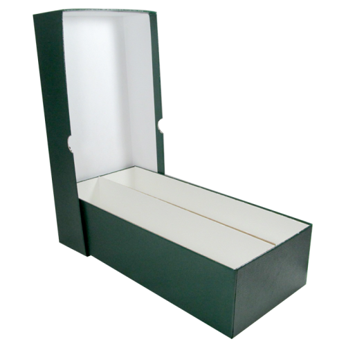 This Guardhouse Double Row Box can store up to 62 Certified Slab Coins. This box is made out of Heavy Duty cardboard and has a Green textured exterior wrap.