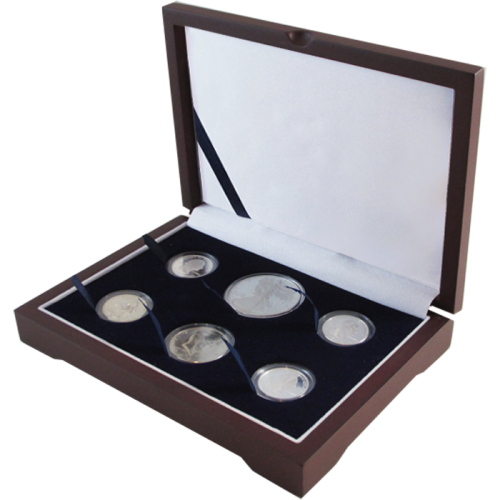 This Guardhouse display box is made to store 6 coin capsules (4S,M,L). This box is a perfect fit for your Mint or Proof Set (Penny through Large Dollar or ASE). It features a beautiful Mahogany finish and a protective wood top. Guardhouse provides you with superior quality at a great price! Capsule sold separately.