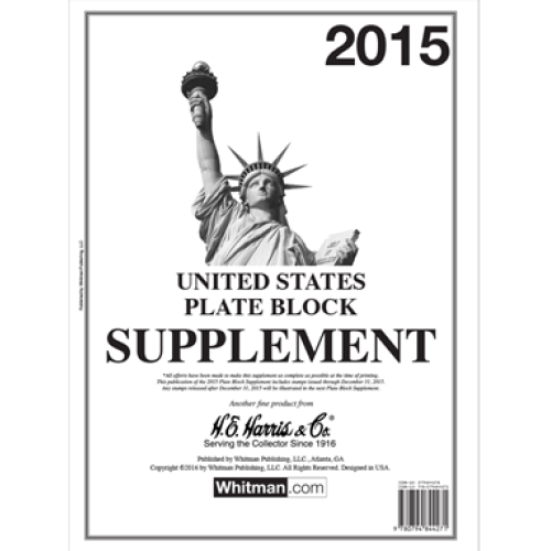This 2015 annual page supplement for the HE Harris Plate Block Album includes all commemorative and regular issues released up to December 31, 2015.