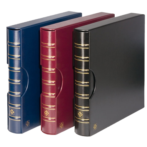 Black: Mint-Sheet and Postcard Album, Ring binder w/ matching slipcase.Holds 40 sheets (black or white) for up to 480 postcards (front and back) or 60 transparent sheets for up to 360 postcards (front only) or 50 sheets for 100 stamp sheetssheet size (not included) for this binder is 12 7/8 x 12 3/4Binder size = 15 3/4 x 14 3/4Slip case size = 16 x 15 1/4Pages Sold Separately !