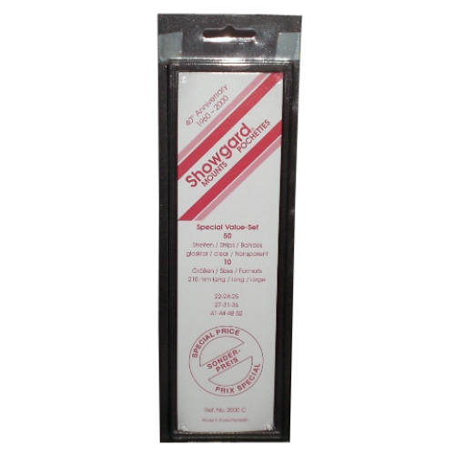 US Strip Sizes No.22 Thru No.52 (50) This set features 5 strips each of the Showgard Mount strip sizes needed for US single stamps (#22,24,25,27,31,36,41,44,48 and 52). The US01 Set offers the best value of our mount assortments.