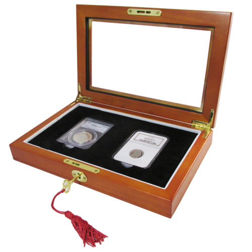 This Guardhouse display box is made to store 2 certified slab coins. This box will accommodate your certified coin from any of today's major grading companies such as PCGS, NGC and ANACS. It Features a beautiful real cherry wood finish and a glass top. Guardhouse provides you with superior quality at a great price!