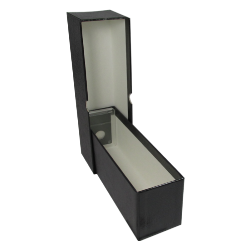 This Guardhouse Single Row Box can store up to 26 Certified Slab Coins. This box is made out of Heavy Duty cardboard and has a Black textured exterior wrap.