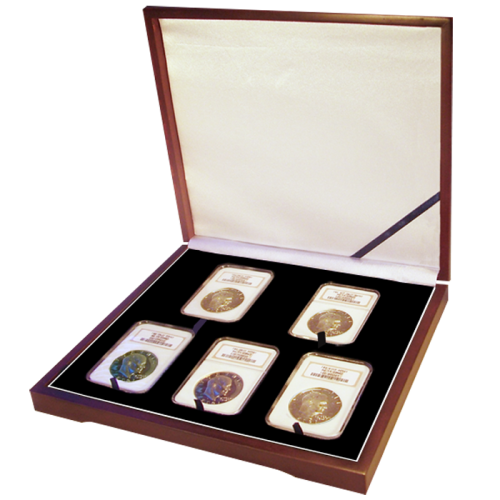 This Guardhouse display box is made to store 5 certified coin slabs. This box will accommodate your certified coin from any of today's major grading companies such as PCGS, NGC and ANACS. It Features a beautiful real Mahogany wood finish and a protective wood top. Guardhouse provides you with superior quality at a great price!