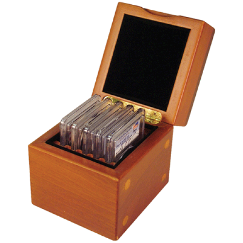 This Guardhouse display box is made to store 5 certified coin slabs. This box will accommodate your certified coin from PCGS & NGC. It Features a beautiful real cherry wood finish and a protective wood top. Guardhouse provides you with superior quality at a great price!