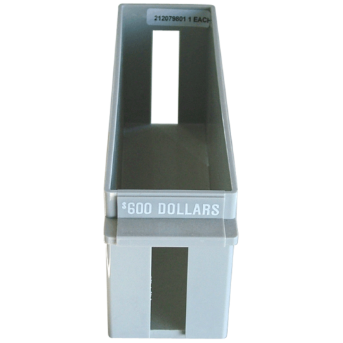 $600 storage capacity. Accomodates large quantities of coin rolls for easy storage. Slots at both ends allow for quick check of contents.