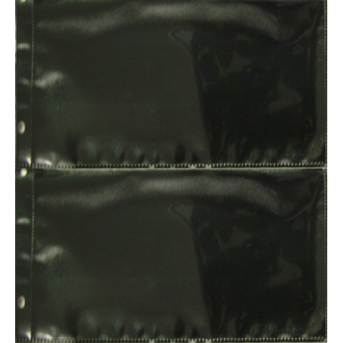 The MPH page features two horizontal pages and is constructed of archival polypro material. This page is clear on the front with a black polypro backing. The MPH notebook page can hold two