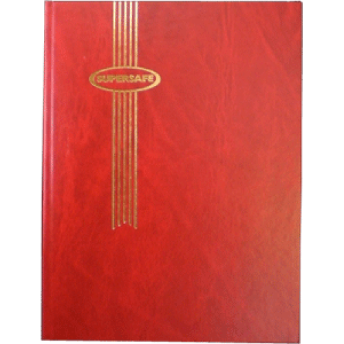Supersafe Stockbook with 64 Black Pages (Padded Cover). With machine rounded strips these stockbooks does not have the pit-falls of razor-sharp edges that can result in torn perfs or damages stamps as you insert them.