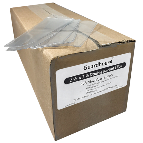 Pre-separated, 7mil, double polished soft vinyl flips are a reliable way to store and process coins. Guardhouse flips do not require tearing to separate and feature rounded corners that will not poke or cut your hands. These flips are about 20% thicker than other standard coin flips, and designed for heavy duty processing, shipping and basic coin storage needs.