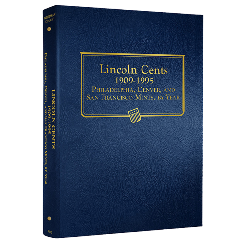 The is the Whitman Lincoln Cents Coin Album dated from 1909 through 1995 with a total of 252 ports for all the P, D and S mint Marks. Whitman Coin Albums are easy to identity by their blue leatherette textured exterior and page notches. These notches make it very easy to remove the clear slides to gain access to your coins.